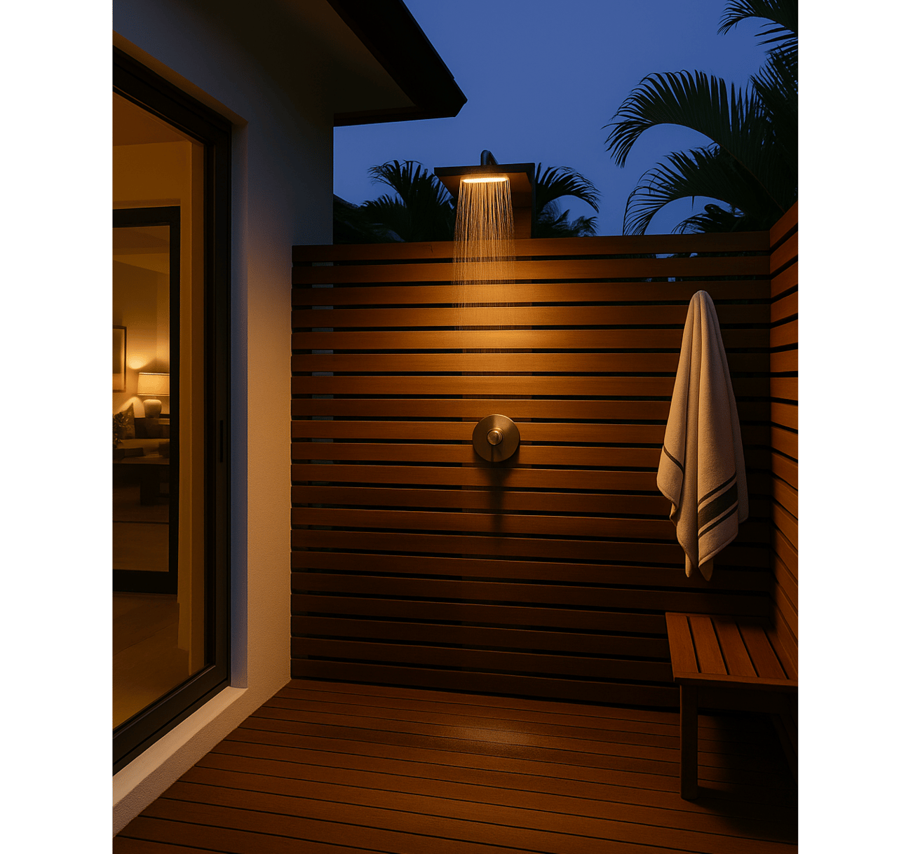 🚿 5. Outdoor Showers That Feel Like a Spa